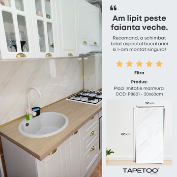 - Pentru Plăcile Imitatie Marmură, se recomandă aplicarea acestora doar pe suprafețe netede.