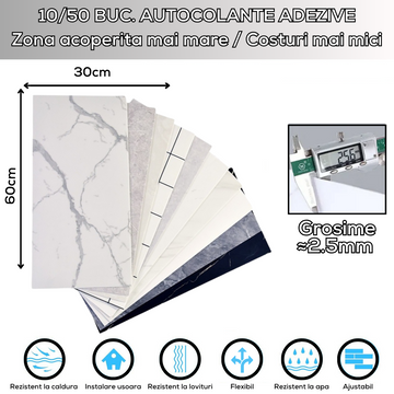 - Pentru Plăcile Imitatie Marmură, se recomandă aplicarea acestora doar pe suprafețe netede.
