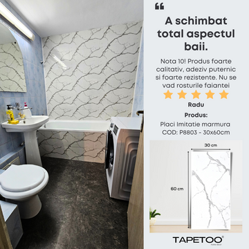 - Pentru Plăcile Imitatie Marmură, se recomandă aplicarea acestora doar pe suprafețe netede.