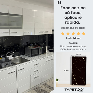 - Pentru Plăcile Imitatie Marmură, se recomandă aplicarea acestora doar pe suprafețe netede.