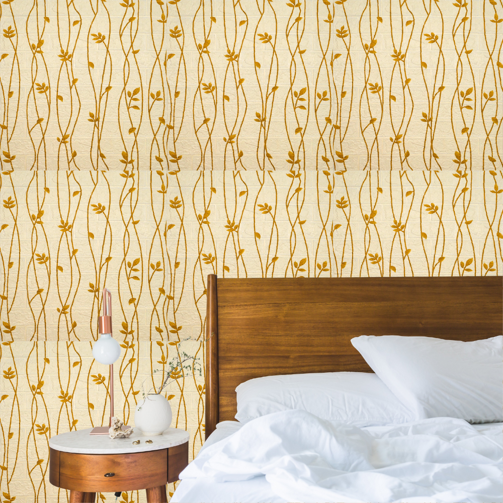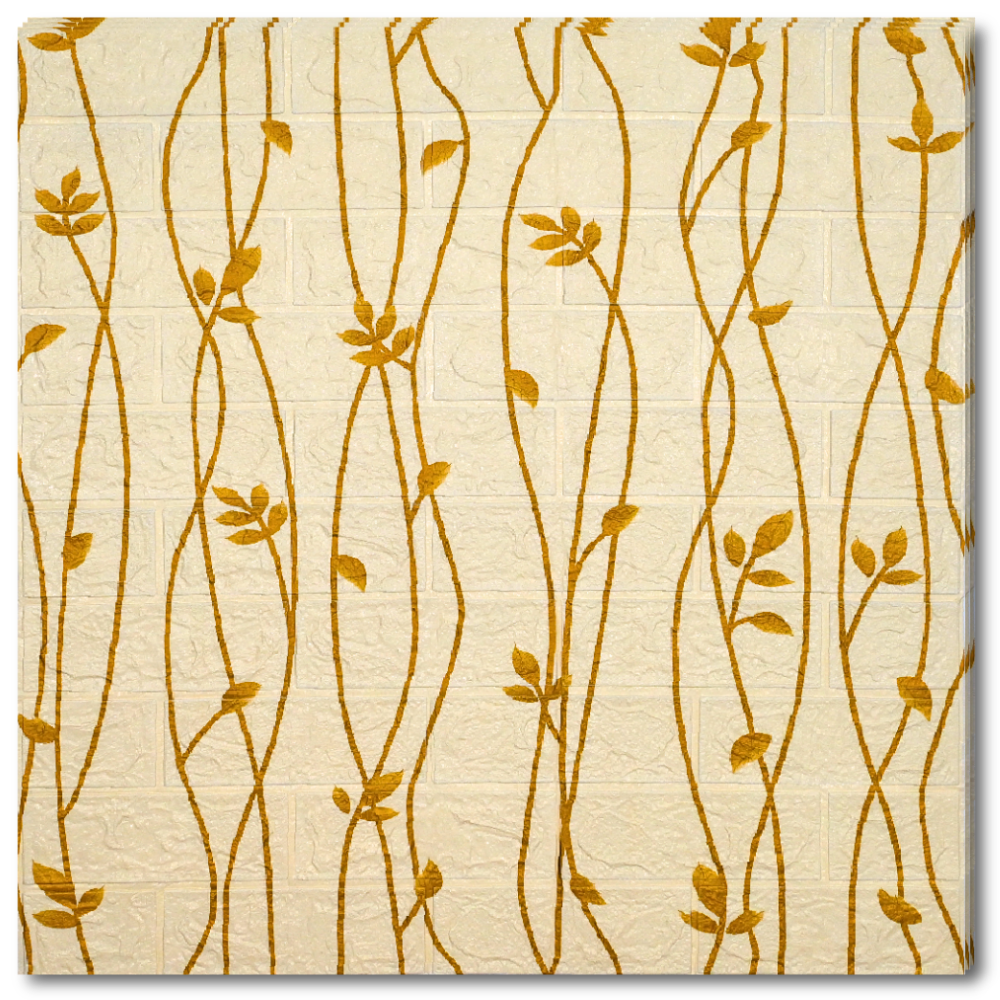 10 x Placi Tapet 3D - 70 X 77 Cm " Caramida crem -ramura- frunze Sepia " 3mm ( COD: 135734 )