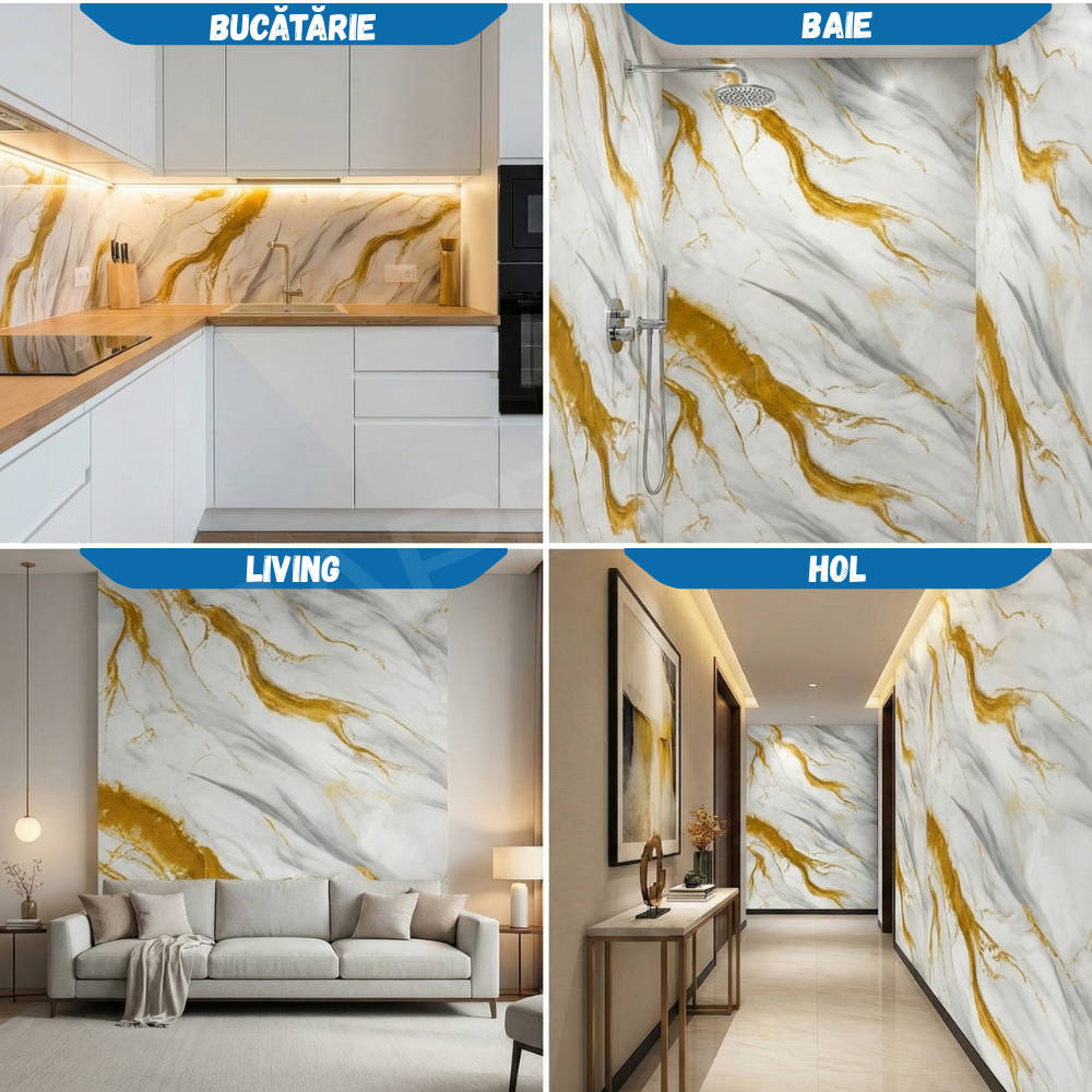 - Pentru Plăcile Imitatie Marmură, se recomandă aplicarea acestora doar pe suprafețe netede.
