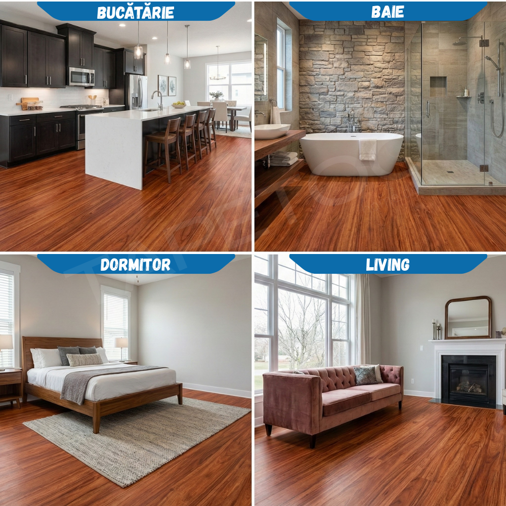 - Se pot aplica peste parchet melaminat, gresie, faianta sau chiar direct pe sapa.