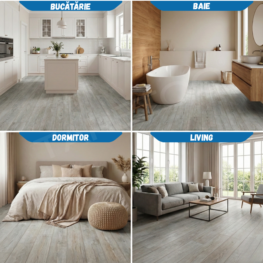 - Se pot aplica peste parchet melaminat, gresie, faianta sau chiar direct pe sapa.