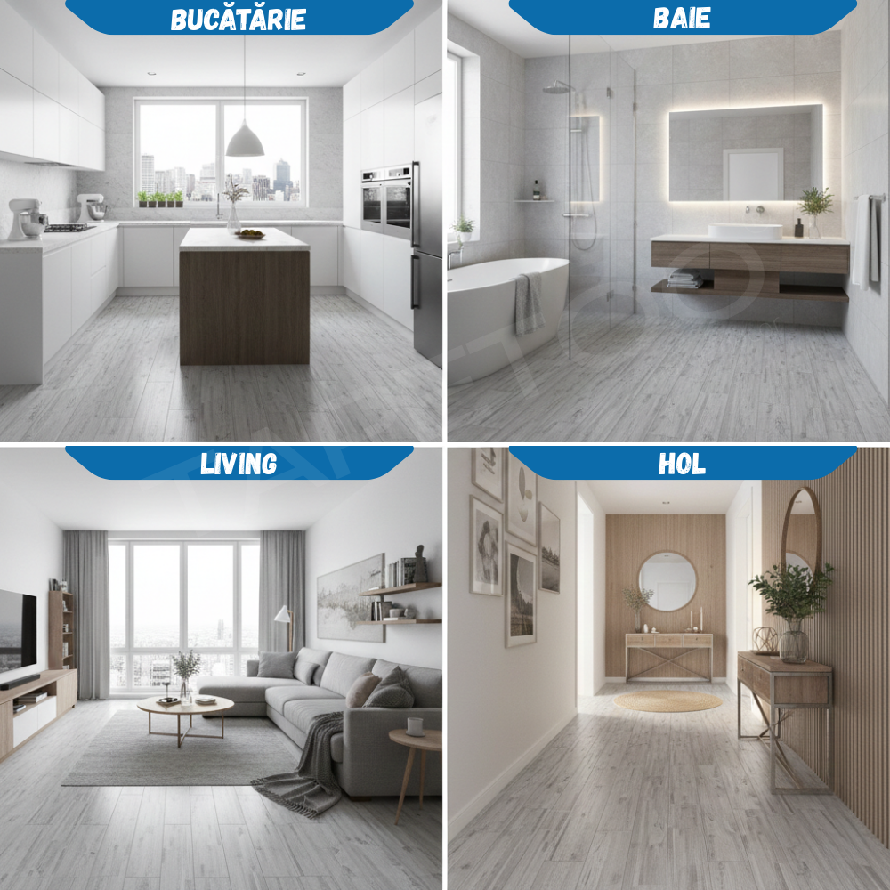 - Se pot aplica peste parchet melaminat, gresie, faianta sau chiar direct pe sapa.